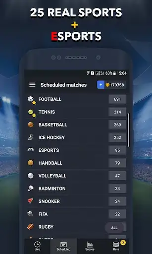🎮 Gameplay: Place bets on future or live matches across various sports, including football, basketball, cricket, tennis and esports betting. Follow the action in real-time, make strategic decisions, and watch your Betcoins balance soar as you make winning predictions with your bets.