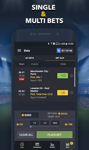 • 🌐 Global Matches: Bet on a wide range of real matches from around the world.