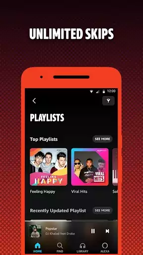 • Play top recommendations, songs from your library, or search for your favorite artists, albums, playlists, and more