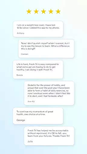 Fresh Tri is a mindset and habit-building app that helps you eat healthy, manage stress, move more and think positively using brain science.