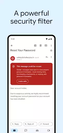 • Stay safe. Our machine learning models block more than 99.9% of spam, phishing, and malware from reaching our users