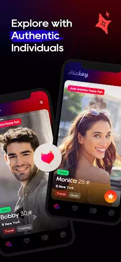 Hickey is one of the largest chat dating apps on the market. By joining Hickey, you never have to worry that you won't find active users here. No matter what kind of pure dating partner you want, there is always the like-minded person waiting for you on the online dating app to start on an adventurous local dating journey.