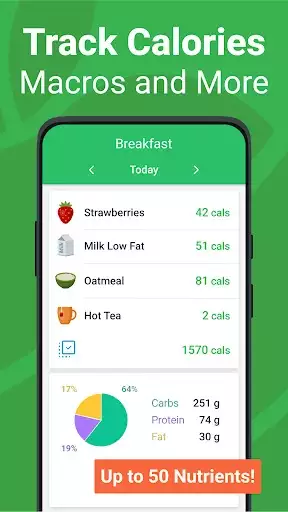 • Track up to 50 nutrients, set custom targets, get the recommendations for optimal nutrition.
