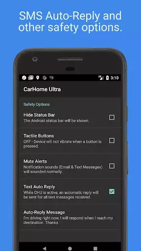 Car Home Ultra has many task automation features to setup your phone for use in the car. This includes: Auto Startup, Display Brightness control, volume control, WiFi settings, and more.