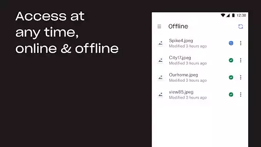 Offline Access: Access your files anytime, anywhere, even without an internet connection.