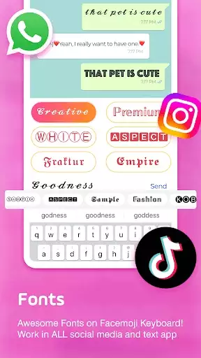The best Font Keyboard app to make your Instagram bios & stories more attractive, get more likes for TikTok posts, write stylish Facebook posts, decorate your WhatsApp & LINE profile, and write fancy texts in Snapchat with awesome fonts and cute text faces.