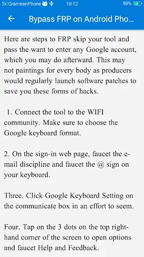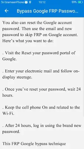 Complete the Bypass: Follow the instructions provided by the APK to successfully bypass the FRP lock. This usually involves accessing specific settings and resetting your device.