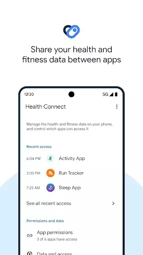 Update privacy settings in a few taps. Before a new app can access your data, you can review and choose what you want to share. If you change your mind, or want to see which apps recently accessed your data, find it all in Health Connect.