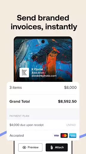 Accept all major credit cards and bank transfers to get paid faster.