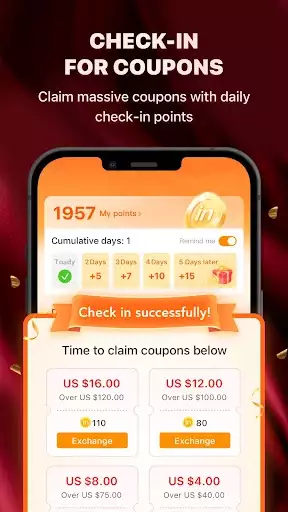 - Check-in to claim massive coupons every day
