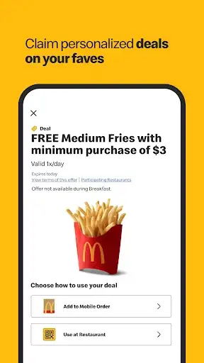 Download the McDonald’s app today and enjoy access to exclusive deals, MyMcDonald’s Rewards and much more.