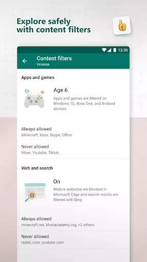 • Web filters for kid-friendly browsing on Microsoft Edge