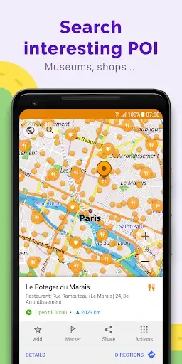 • Choice of places to be displayed on the map: attractions, food, health and more;