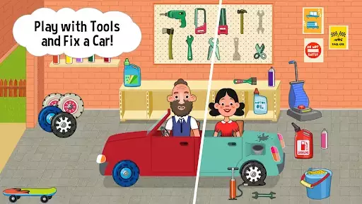 Explore different rooms of a virtual family sweet home and like in a real life fix your family car, have a picnic, dress-up characters, or cook them a tasty burger! Want even more? Unleash your imagination, take your favorite characters and items to the the elevator, move them between the floors, mix and match for awesome results!