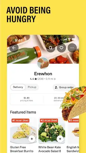 Browse nearby restaurants. Choose from a variety of selections to order: Pizza. Burritos. Burgers. Sushi. Chinese food. Skip the line and reservations. Order your food from any menu and add it to your cart with a few taps. Or, schedule your food order in advance for a delivery person to pick it up later. Your choice!