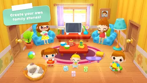 Join a family of 6 lovely characters in their day to day life and create your own home stories. Play, explore and have fun doing funny chores in this cozy house: Make tasty meals, diaper the little baby, dress the kids, brush their teeth in the morning, or read to them before sleeping at night.