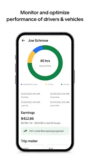 - Stay informed about your fleet’s metrics, including trip count, online hours, and earnings.