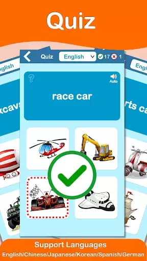 The app provides the best way to get started learning many kinds of Vehicles which contains many cards, each word card are voice-enabled, and related words and pictures.