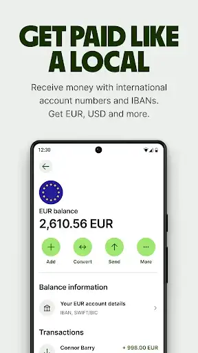 - Use account details to get paid by clients and customers around the world
